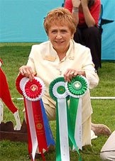 | Correct bite. Excellent construction. Good topline. Exc neck. Exc head with nice expression. Exc earset. Good front. Correct hindquarters. Tailset could be a little bit higher. Good mover. |